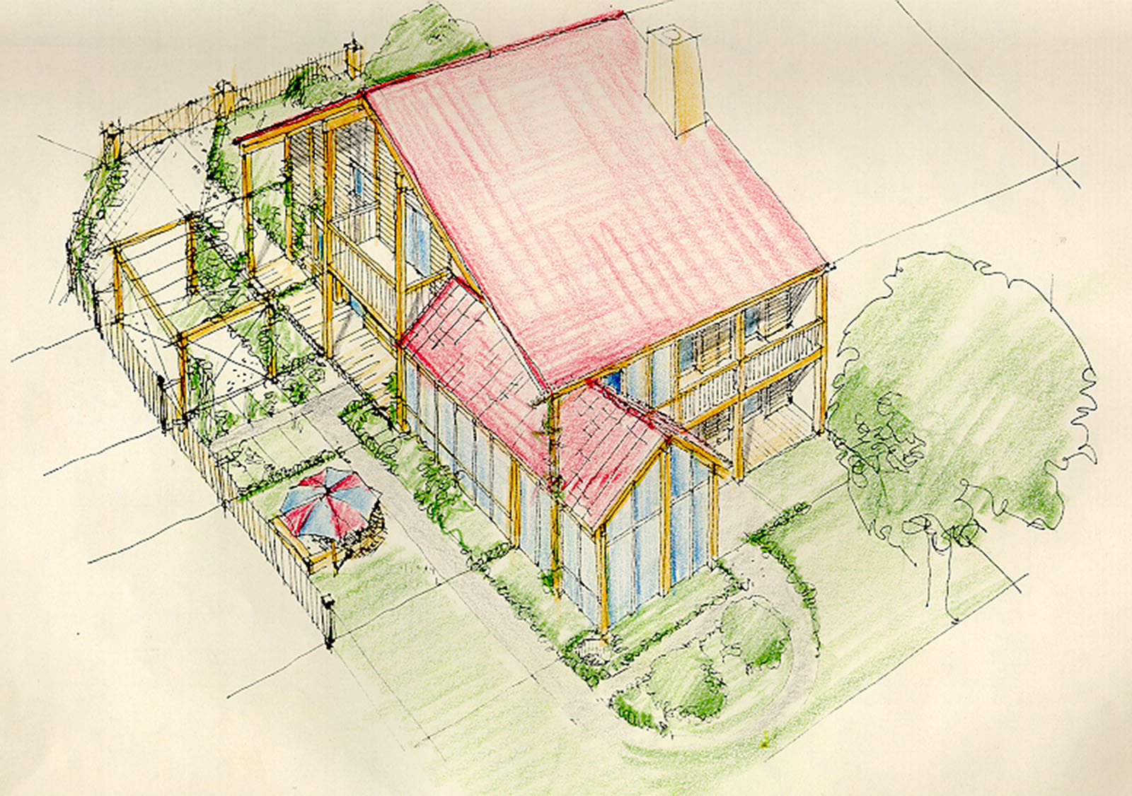 Der Nachbar der Ost-Hälfte wurde überredet (nicht von mir!) und entschied sich auch für ein Haus aus meiner "Feder".