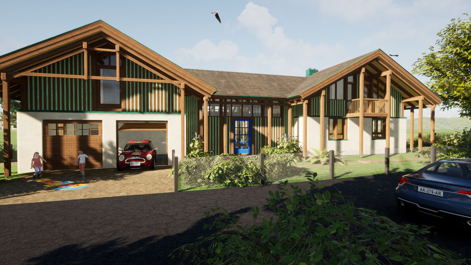 Holzskelettbauweise mit Massiv-Garage