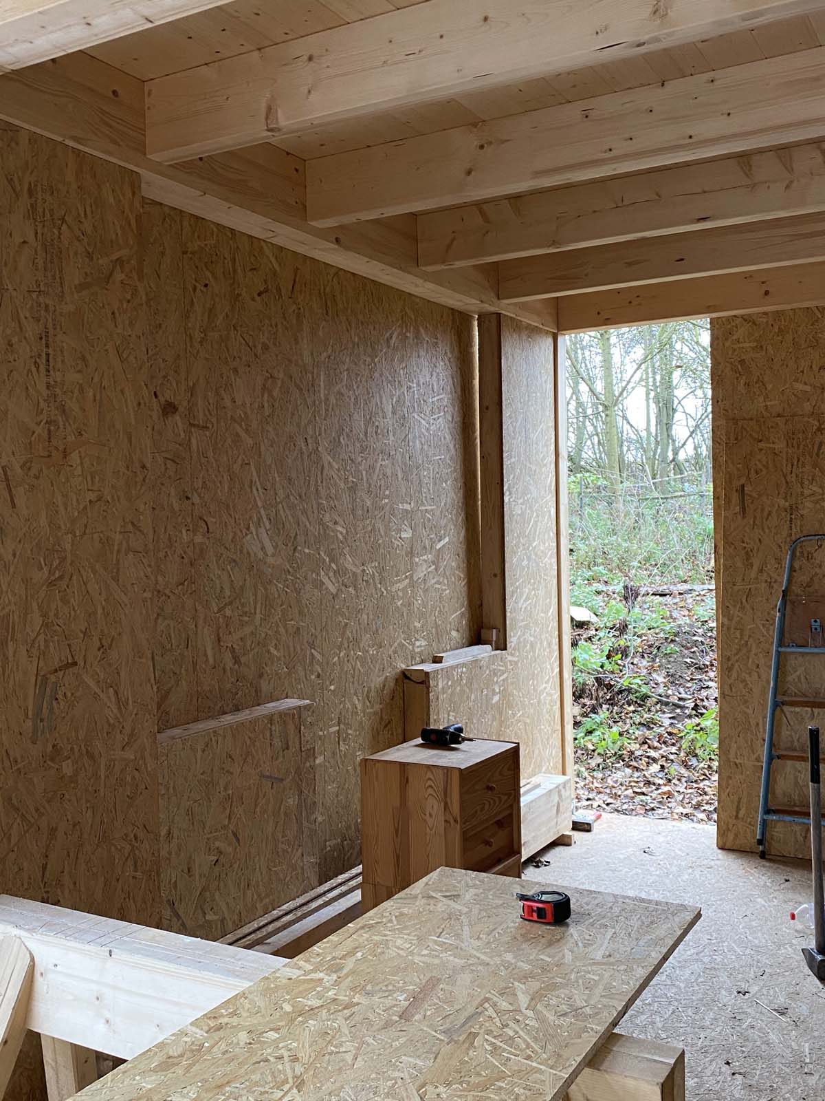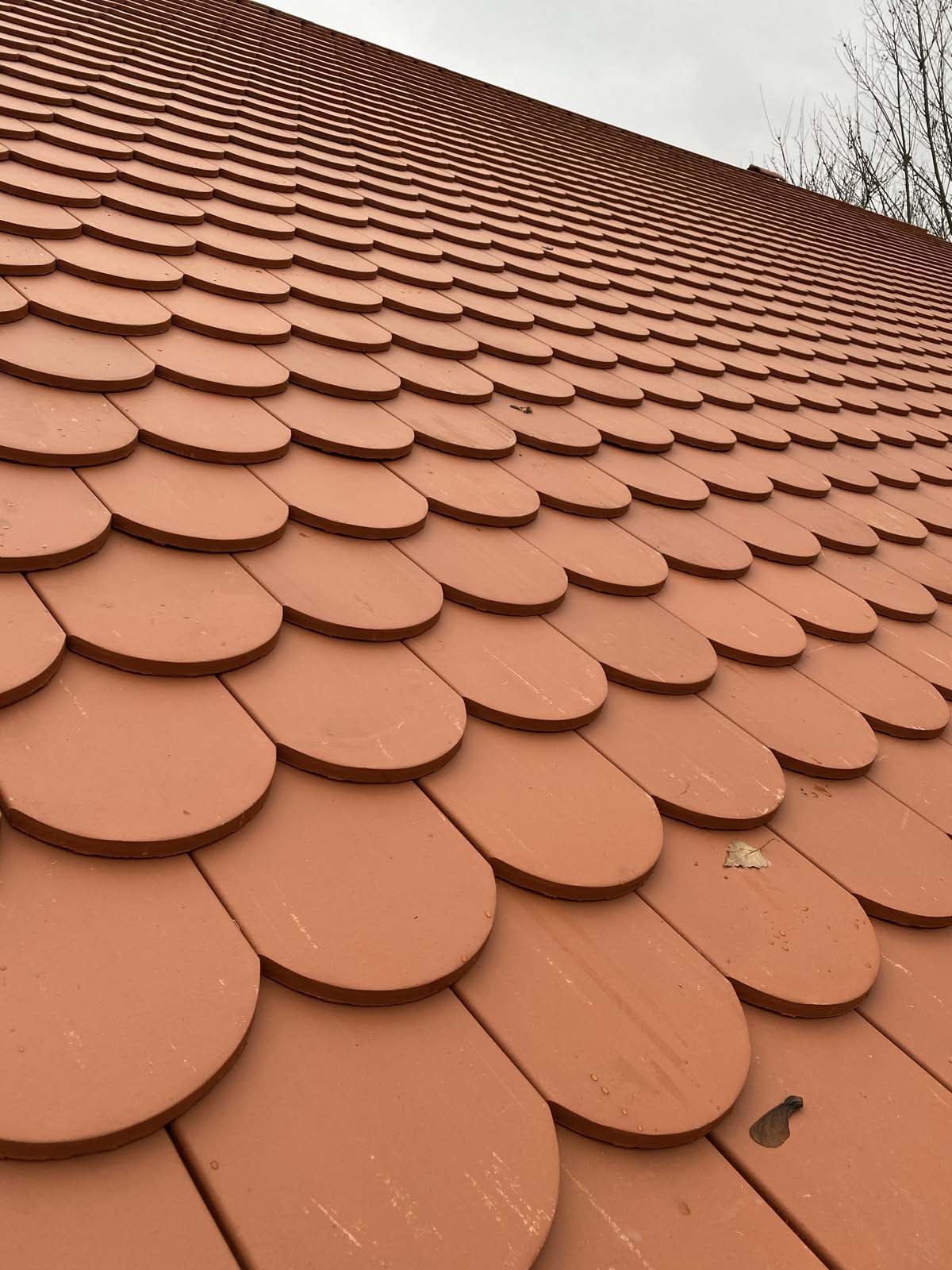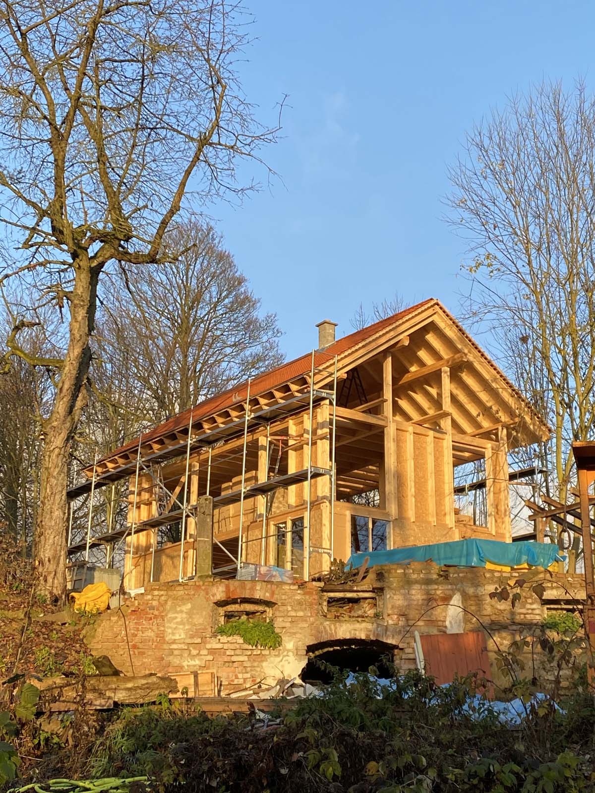 ein Haus entsteht ... Nordseite und First eindecken, Traufe einschneiden