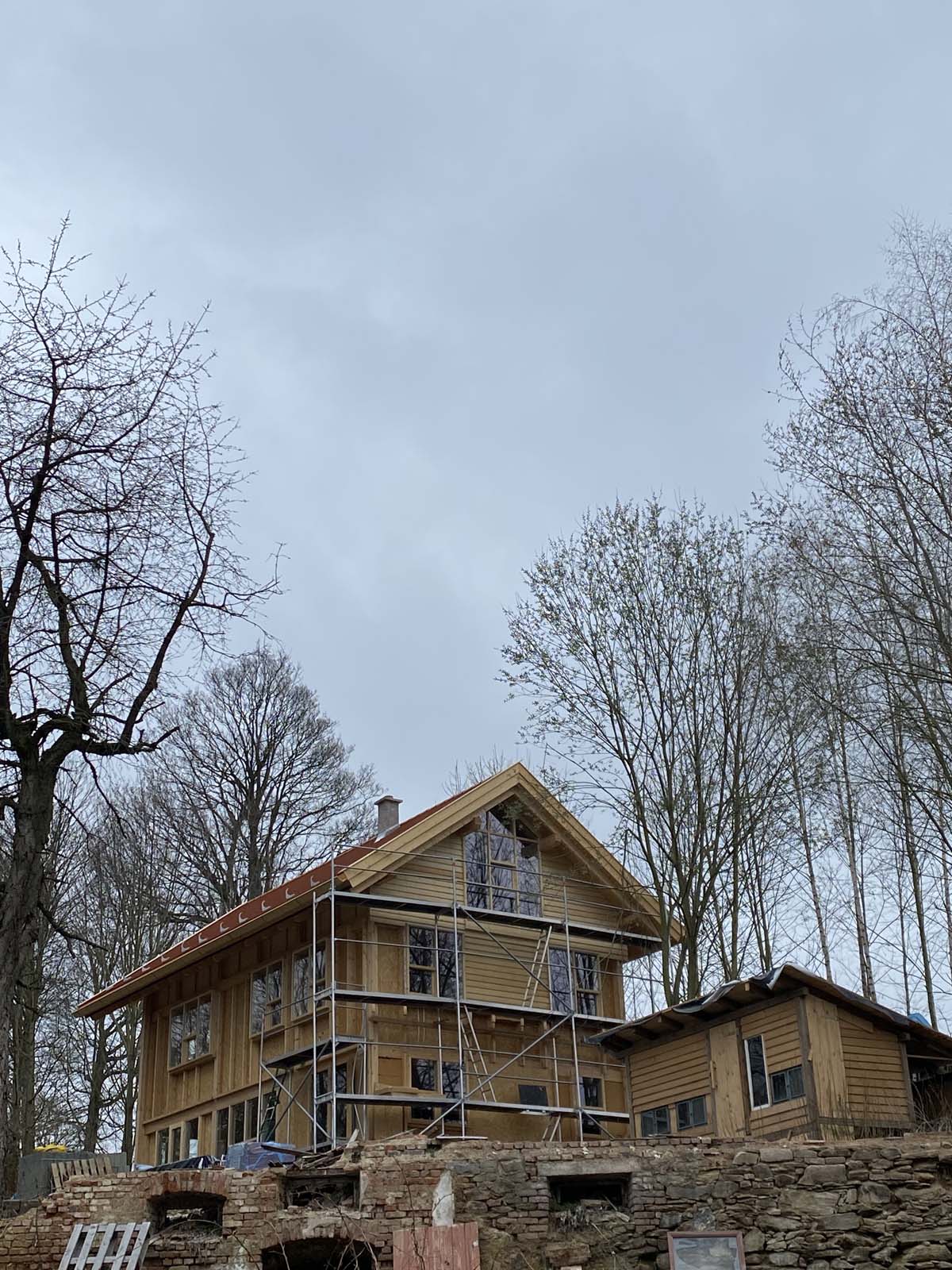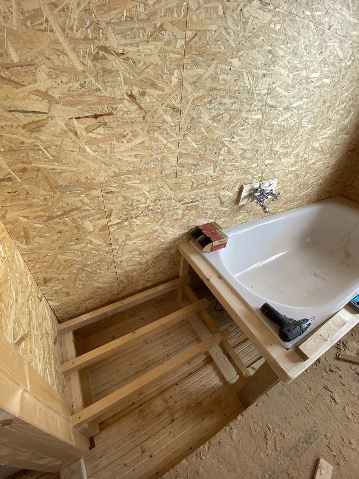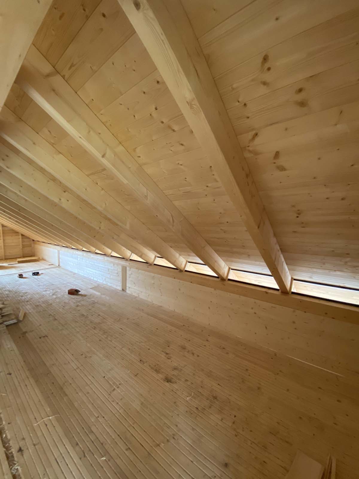 das Bad wird benutzbar gemacht und die Fensterchen zwischen die Sparren eingebaut