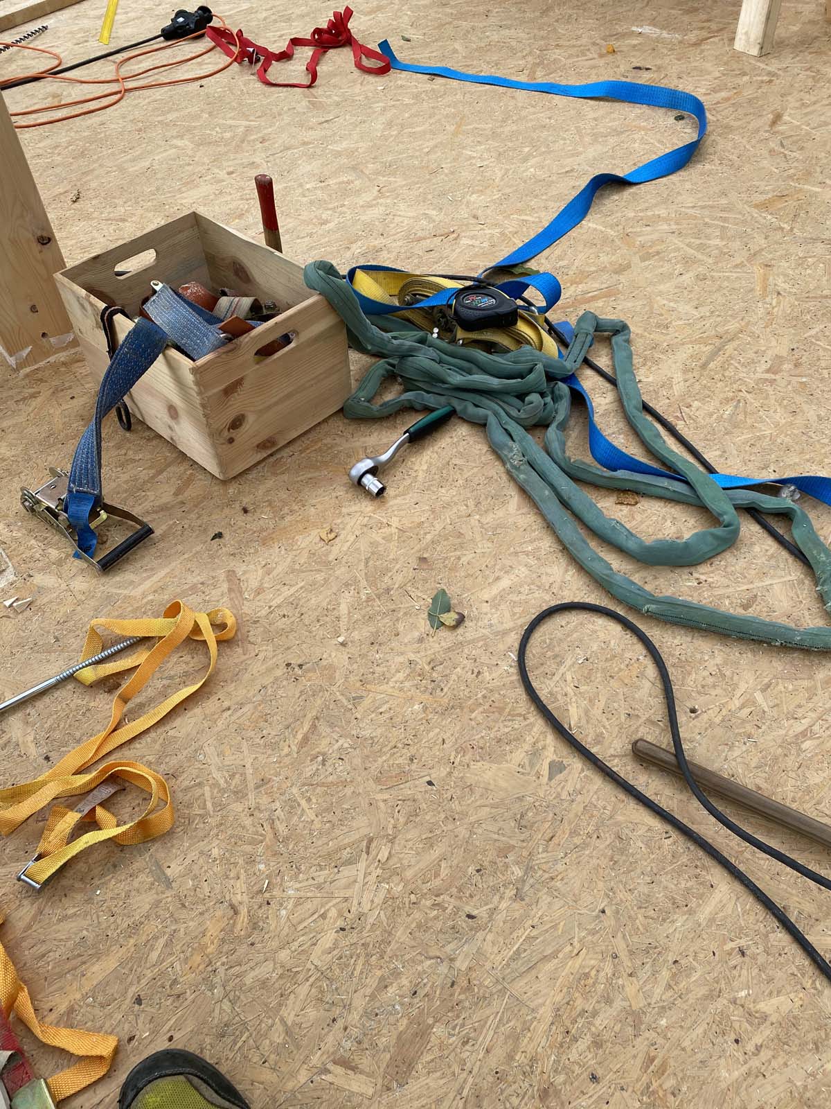 alle andern Bauteile müssen ägyptisch mühevoll mit Seilwinde bzw. Flaschenzug in die Höhe gebracht werden