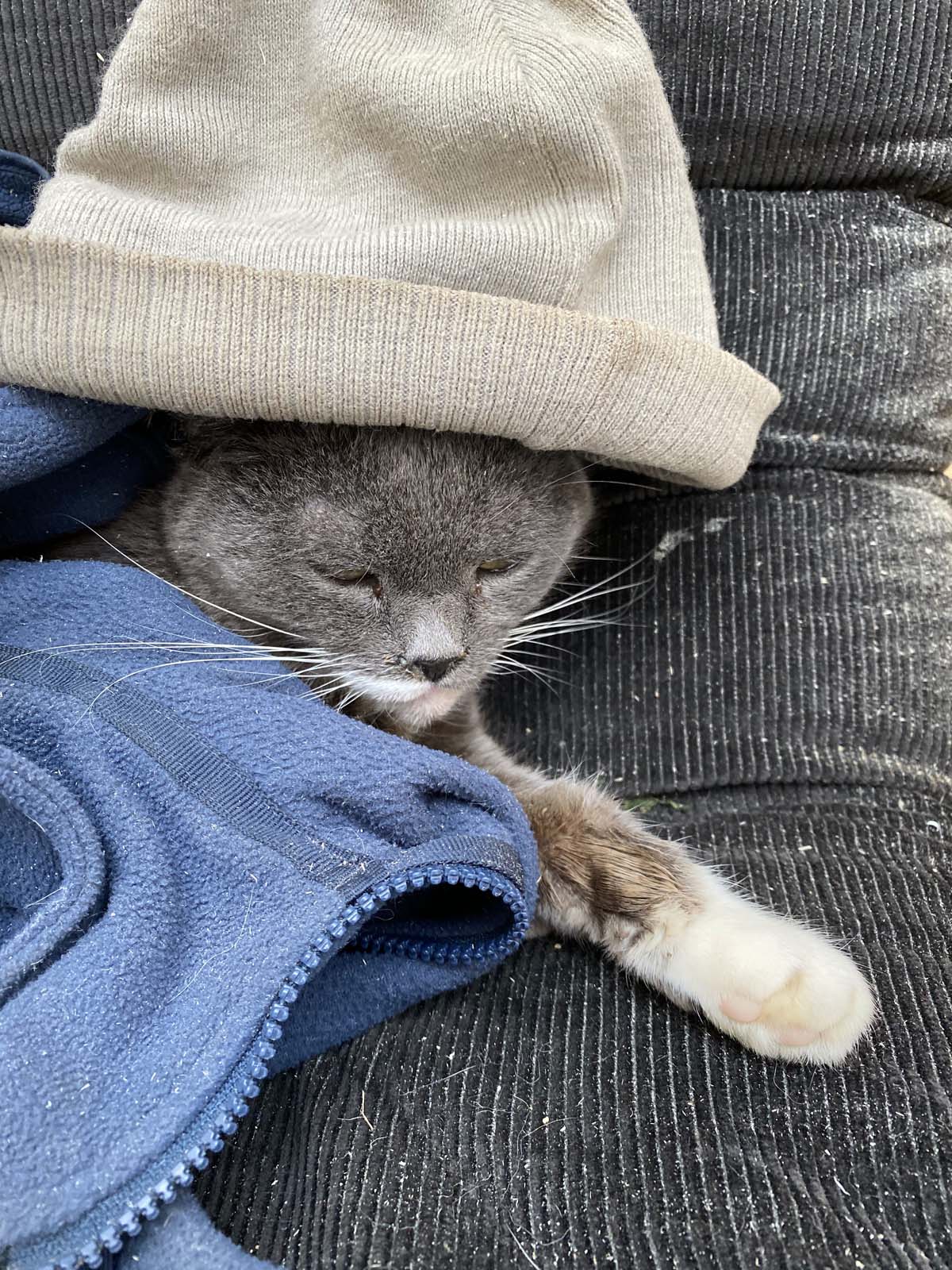 Cheffin pennt eingemummelt nach ausgiebiger Körperpflege im Cheffinnensessel
