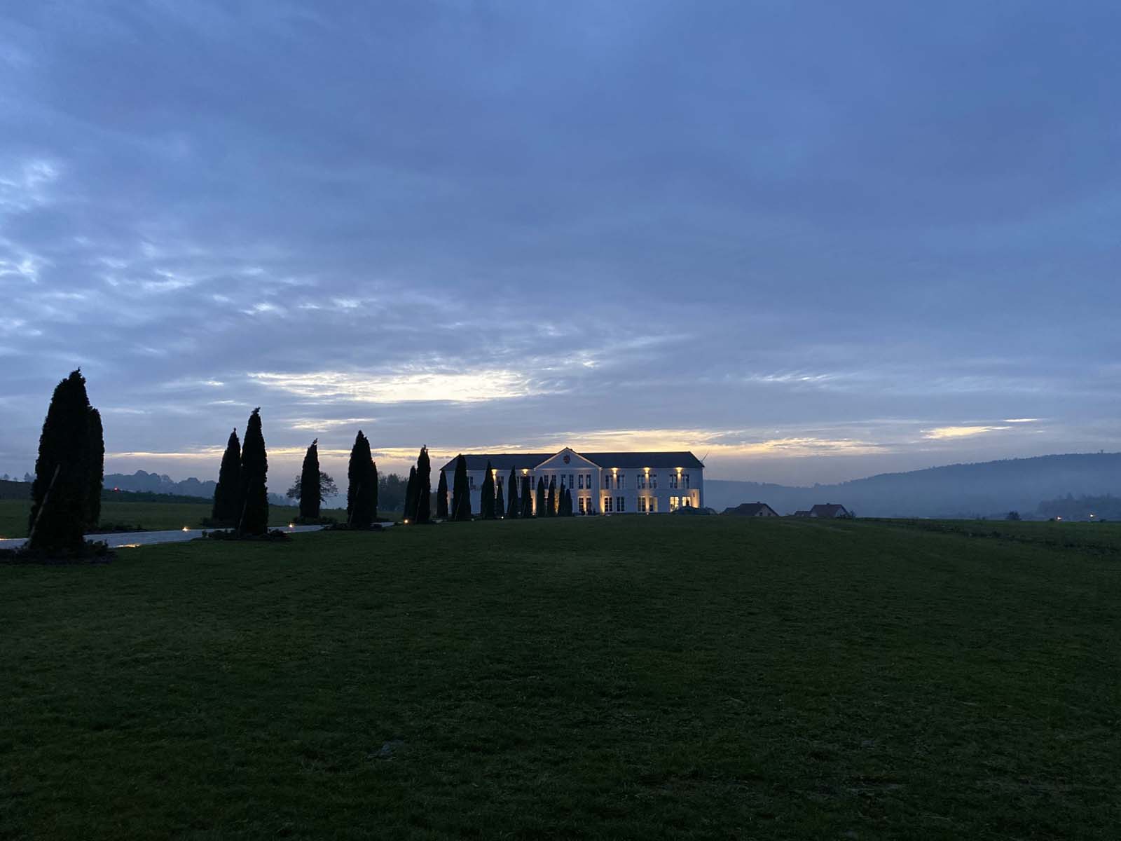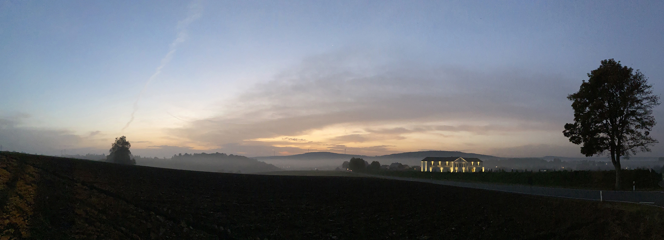 einen protzigen Prunkbau gibt es auch in der Nähe meiner Baustelle - mitten auf dem freien Feld - illuminiert die GANZE Nacht - wer da wohl was wie für wen und unter|zu welchen Bedingungen genehmigt hat?